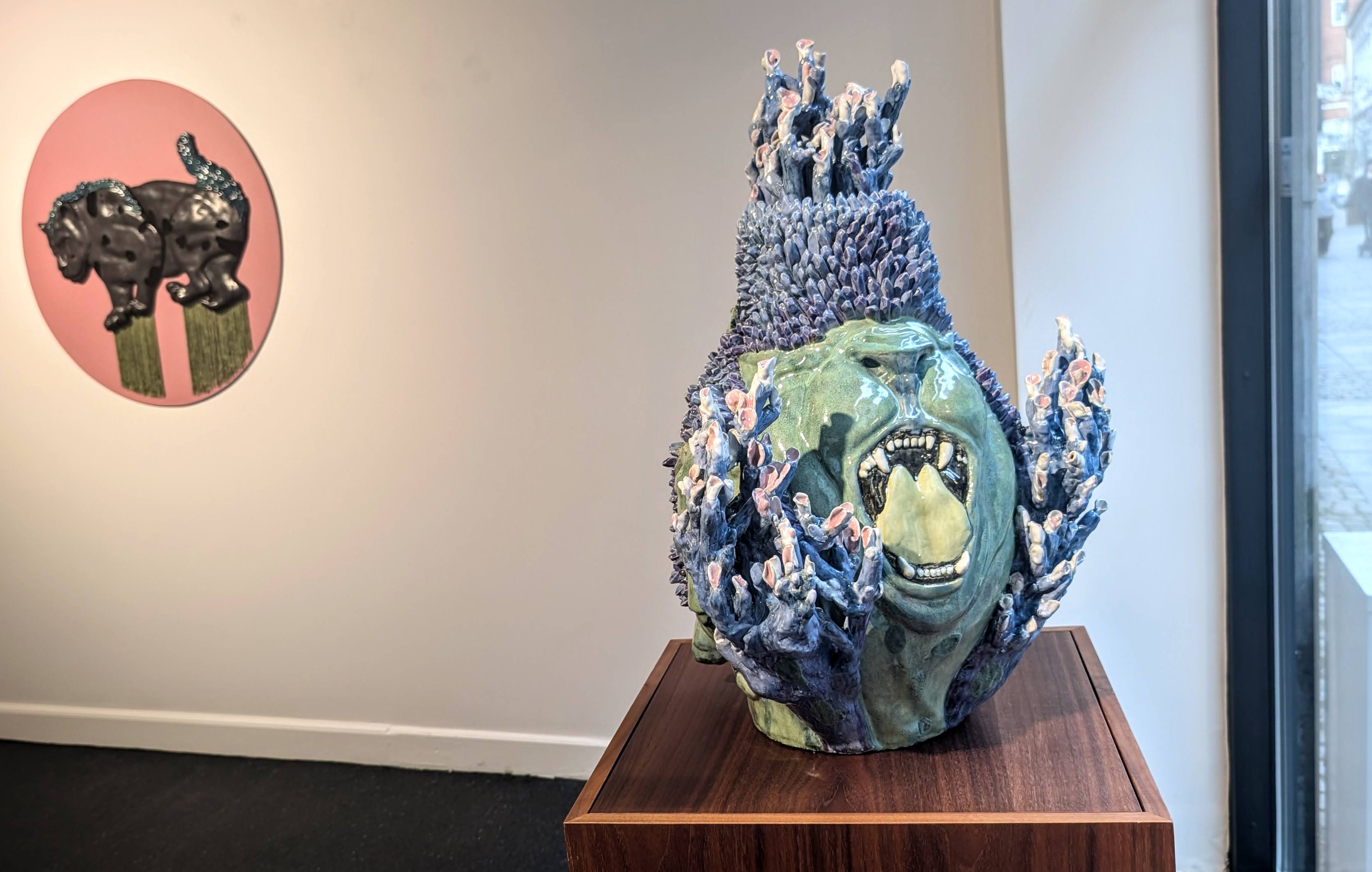 Nadine Meinicke-Kleint is a Copenhagen-based sculptor working with glazed ceramic sculpture and hybrid wall-mounted reliefs. Her work explores transformation, myth, and material growth through speculative, organic forms.